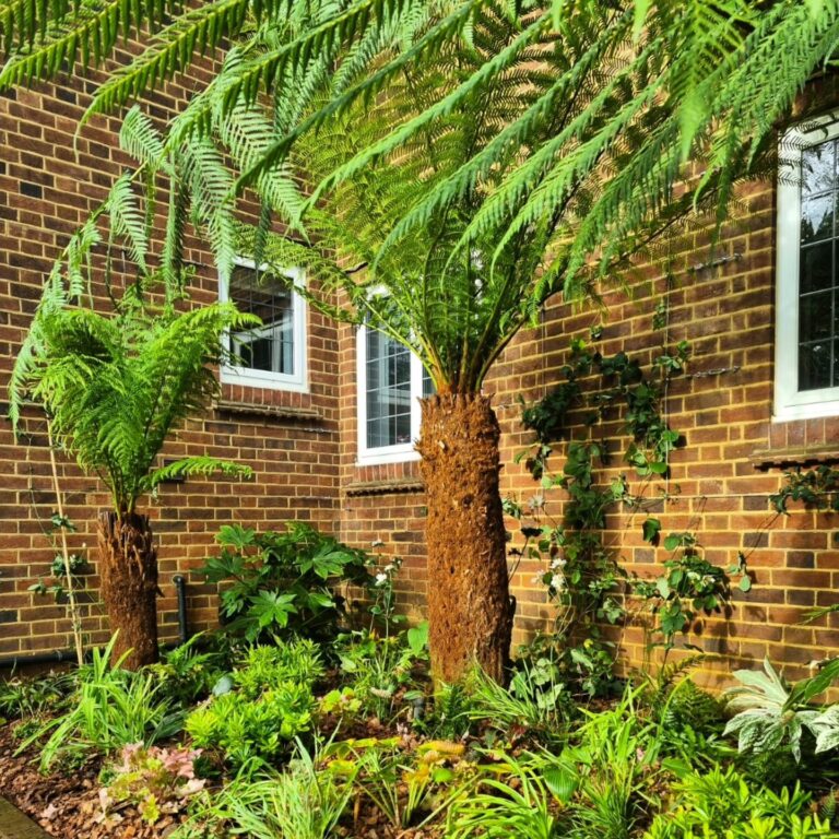 – Dicksonia antarctica (tree ferns) to provide architectural height and a tropical feel.