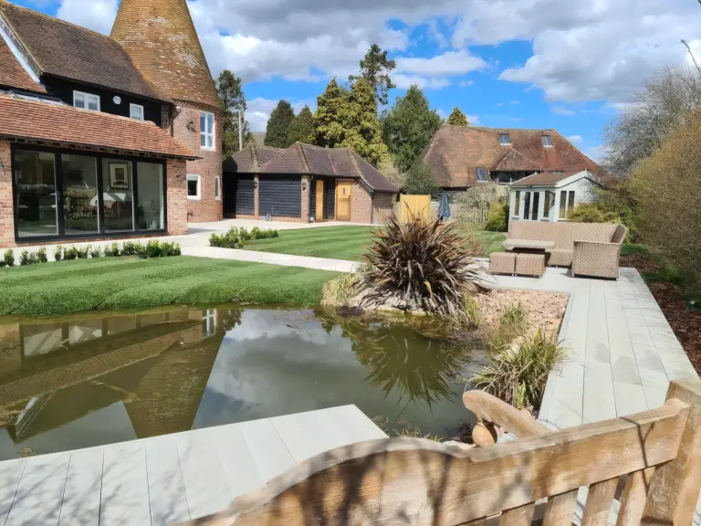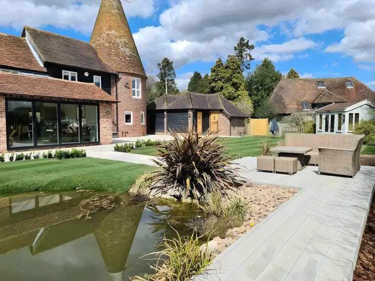 Set in the picturesque Weald of Kent, this Oast House renovation required a garden that complemented its historic character while introducing modern functionality and style. The client wanted an elegant, low-maintenance outdoor space, making use of high-quality materials that seamlessly connected the indoors with the landscape beyond.