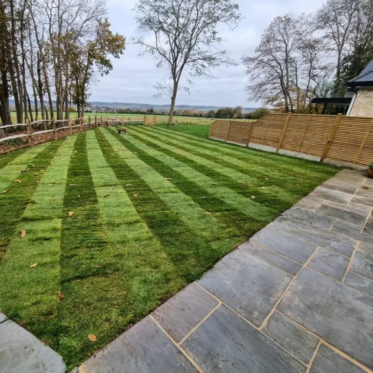 The result is a lawn that’s both beautiful and practical – rich in colour, soft in texture, and durable enough to last for years to come. It complements the surrounding landscape perfectly and enhances the garden’s overall appeal.