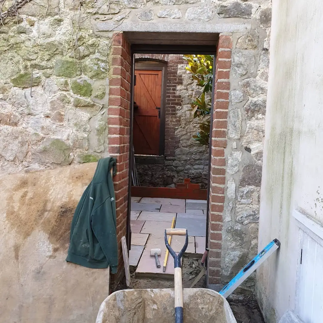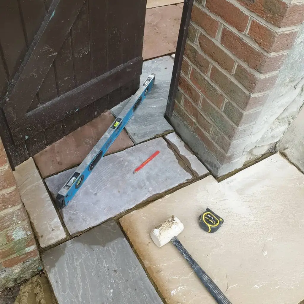 To ensure a high-quality finish, we selected premium sandstone paving from Marshalls, known for its durability, natural variation, and classic appeal. The combination of warm, earthy tones perfectly complements the surrounding stone walls and rustic red brickwork, creating a charming and inviting space.